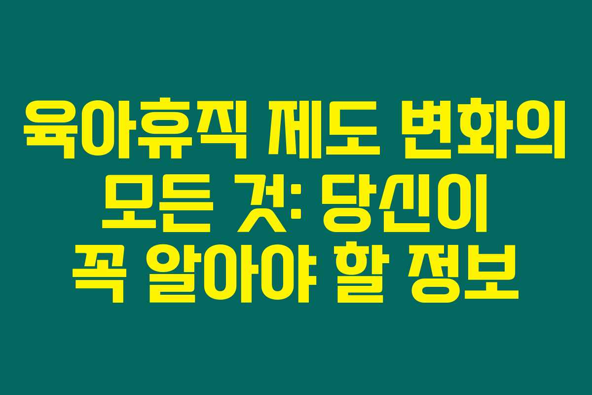 제가 직접 알아본 바로는 육아휴직 제도가 정말 빠르게 변화하고 있다는 사실을 느꼈어요. 다양한 정책의 변화로 인해 많은 부모님들이 더 나은 환경에서 자녀를 양육할 수 있는 기회를 포착하고 있답니다. 이번 포스트에서는 육아휴직 제도의 변화와 함께, 이 제도를 활용하는 방법, 주의할 점 등을 자세히 다뤄볼게요.