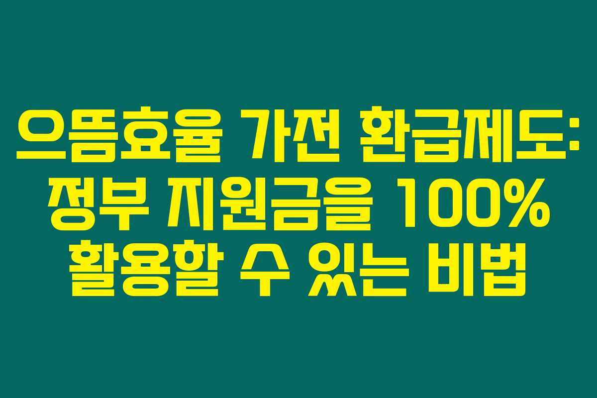 에너지 효율을 높이고 전기요금을 절약할 수 있는 좋은 기회, 으뜸효율 가전 환급제도! 정부에서 제공하는 잡지 않은 지원금을 최대한 활용하기 위한 방법을 아래를 읽어보시면 자세히 알게 될 거예요. 고효율 가전제품을 구매한 후 진정한 절약을 경험해 보세요!