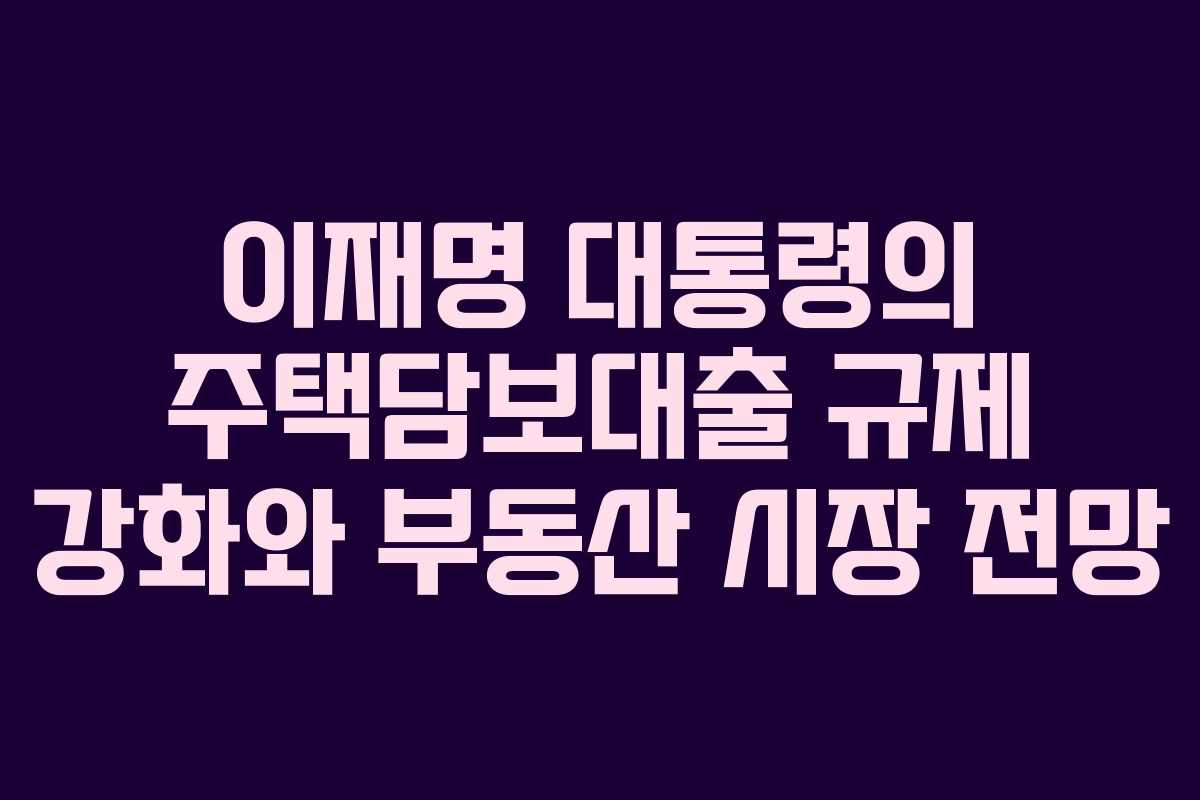 이재명 대통령의 주택담보대출 규제 강화와 부동산 시장 전망