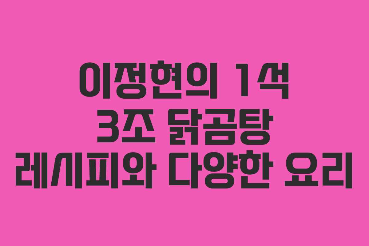 이정현의 ‘1석 3조 닭곰탕’은 맛과 영양을 동시에 잡을 수 있는 훌륭한 요리입니다. 이 글에서는 닭곰탕을 포함한 여러 요리 레시피를 소개합니다.