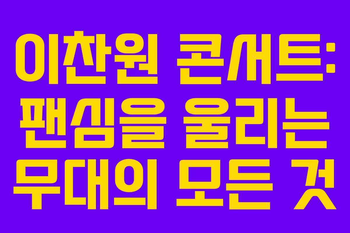 이찬원의 콘서트는 그의 팬이라면 절대 놓칠 수 없는 특별한 경험입니다. 이 글에서는 이찬원 콘서트의 매력과 준비 방법에 대해 자세히 소개합니다.