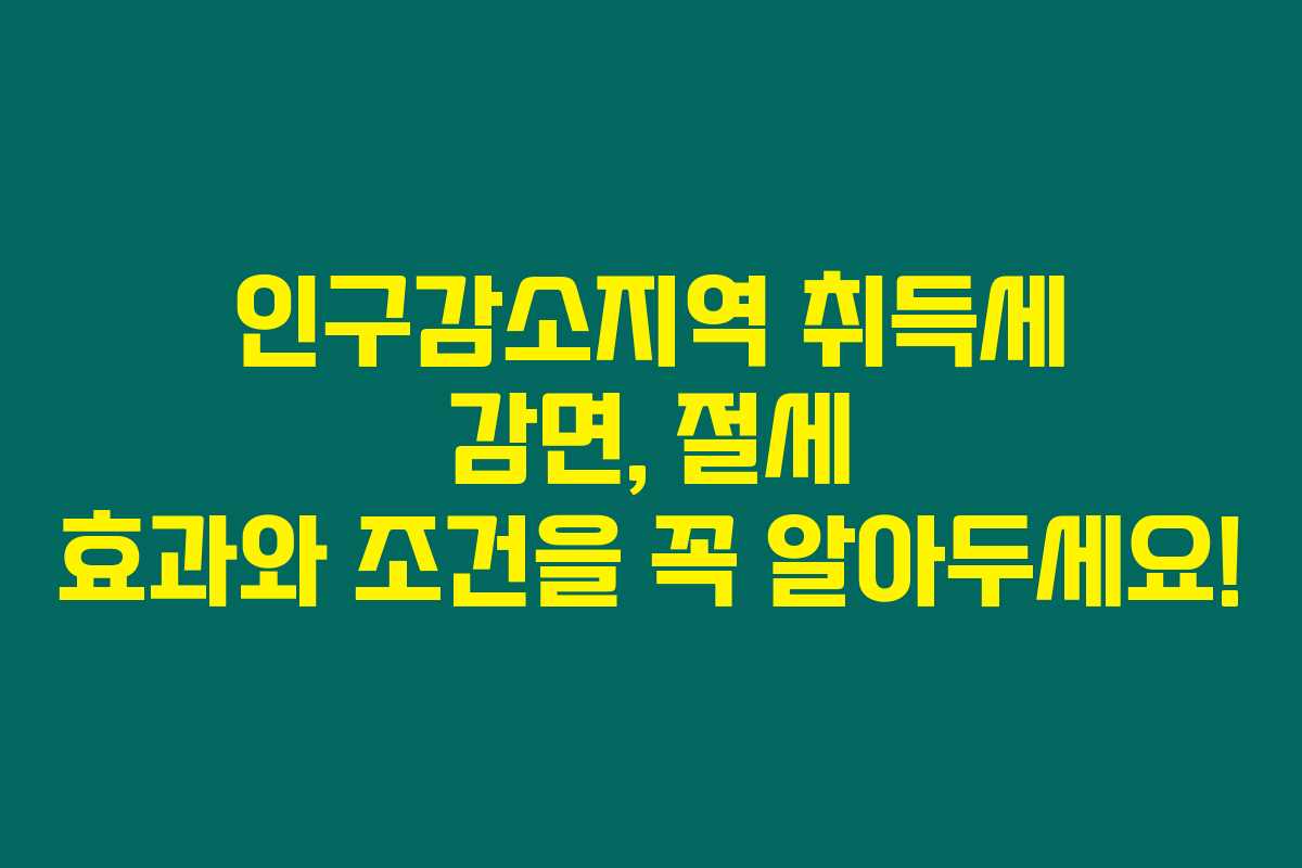 인구감소지역 취득세 감면, 절세 효과와 조건을 꼭 알아두세요!
