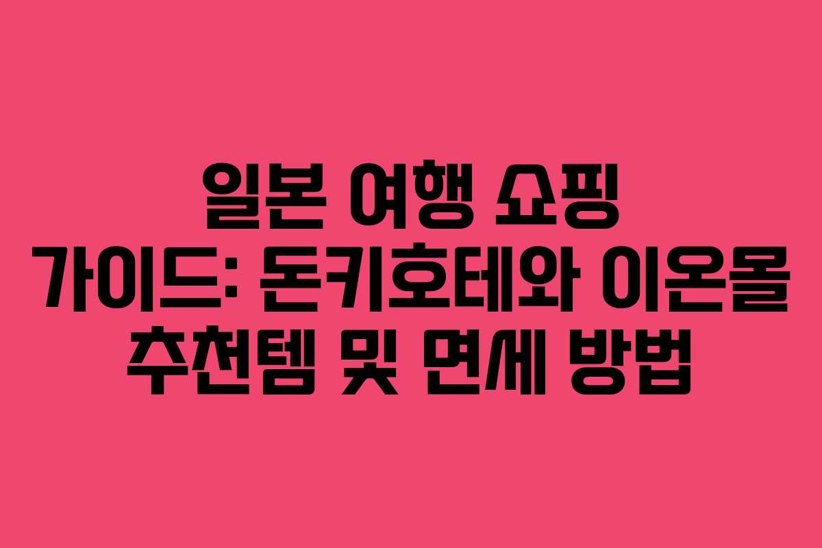 일본에서의 알찬 쇼핑 계획을 세우고, 다양한 할인 혜택을 활용하여 즐거운 여행을 만끽하시기 바랍니다.