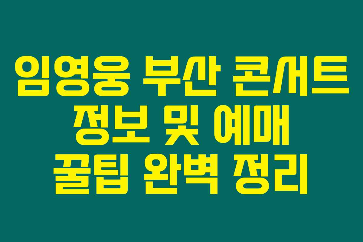부산에서의 임영웅 콘서트가 다가오고 있어요. 팬이라면 놓칠 수 없는 기회죠? 철저한 준비로 티켓 예매에 성공하고 싶다면, 아래 정보를 꼭 확인해보세요.