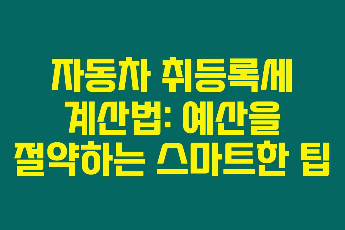 자동차 구매를 계획 중이라면, 자동차 취등록세가 얼마나 발생하는지 미리 알아두는 것이 아주 중요해요. 만약 취등록세 계산이 복잡하다고 느껴진다면, 아래 정보를 참고하면 분명 도움이 될거에요. 그렇다면 이 세금을 어떻게 계산하고 절약할 수 있을지 궁금하다면, 아래를 꼭 읽어보세요!