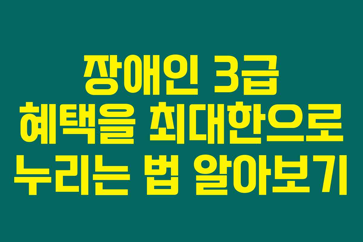 제가 직접 경험해본 결과로는, 장애인 3급은 많은 혜택을 제공받을 수 있는 기회를 가지고 있답니다. 반드시 이를 활용하여 보다 나은 삶을 누리시길 바랍니다. 추가로 궁금하신 점이 있다면 언제든지 질문해주세요!