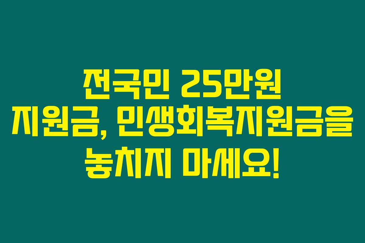 이처럼 전국민 25만원 지원금은 경제적으로 어려운 시대에 많은 가정에 실질적인 도움이 될 것이라고 생각합니다. 추가 정보가 나오면 지속적으로 업데이트하니, 꼭 확인해 보시길 바라요!