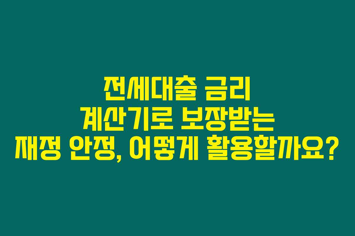 제가 직접 체크해본 바로는, 많은 사람들이 전세대출을 받을 때 적합한 대출 상품을 선택하기 위한 기준이 부족한 경우가 많아요. 대출 금리와 상환 조건을 잘 살펴보는 것이 중요하다는 점, 아시죠? 그렇다면 전세대출 금리 계산기를 활용하면 어떨까요? 아래를 읽어보시면, 대출 상품 선택과 계획 수립에 도움을 받을 수 있는 다양한 방법을 아실 수 있을 거예요.