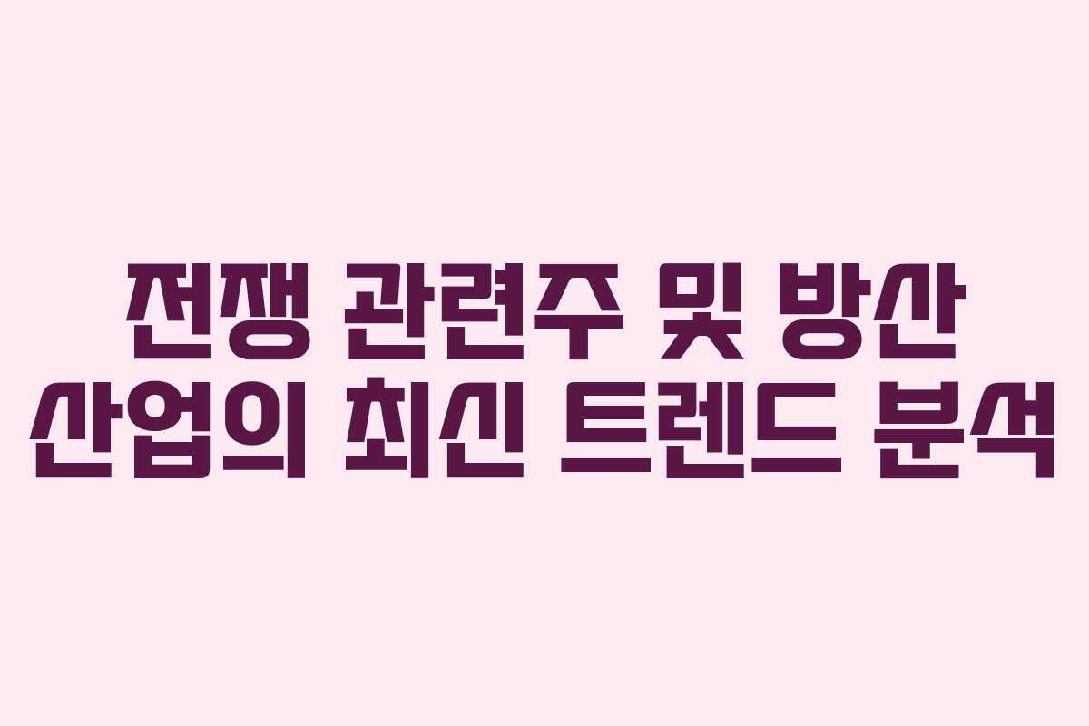 전쟁 관련주 및 방산 산업의 최신 트렌드 분석