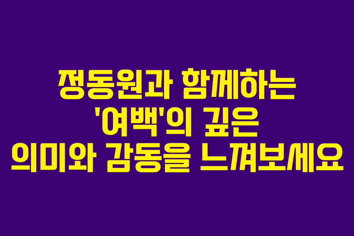 정동원의 ‘여백’은 단순한 노래를 넘어, 삶의 여백을 찾아가는 여정의 시작을 알리는 곡이다. 이 곡을 통해 우리는 정동원과 함께 자신의 내면을 탐색하고, 진정한 아름다움을 찾아가는 과정을 경험할 수 있다. 그의 음악은 앞으로도 많은 이들에게 깊은 감동과 여운을 남길 것으로 기대된다.