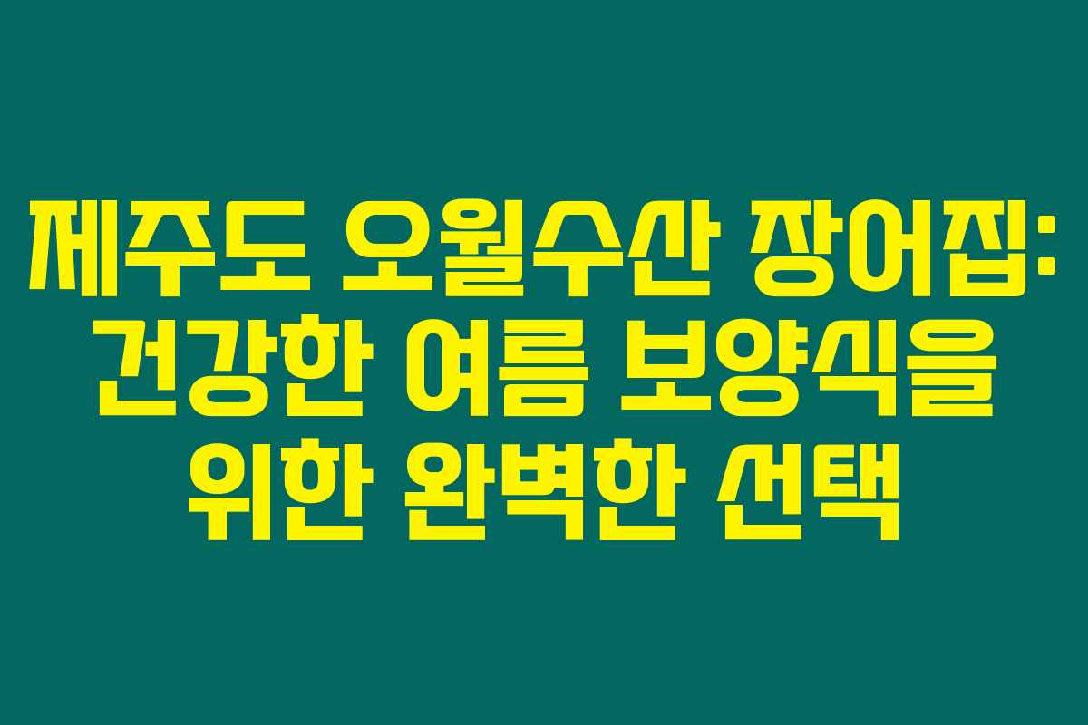 제주도 오월수산 장어집에서의 경험은 정말 각별했습니다. 복날보양식을 찾아 제주를 방문하신다면, 꼭 가보시기를 추천해요! 건강한 여름 보양식으로 제격인 장어구이를 맛보며 활력을 찾으시길 바랍니다.