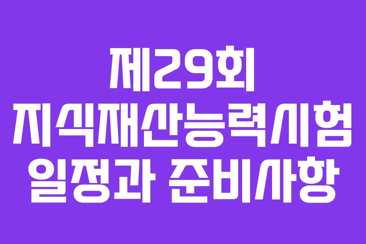 2024년 11월 23일에 시행될 제29회 국가공인 지식재산능력시험 일정이 공개되었다. 이 시험에 대한 원서접수는 10월 17일부터 11월 7일까지 진행되며, 접수 시 시험장소는 홈페이지를 통해 확인할 수 있다. 성적 발표는 12월 5일에 지식재산능력 홈페이지에서 이루어진다.