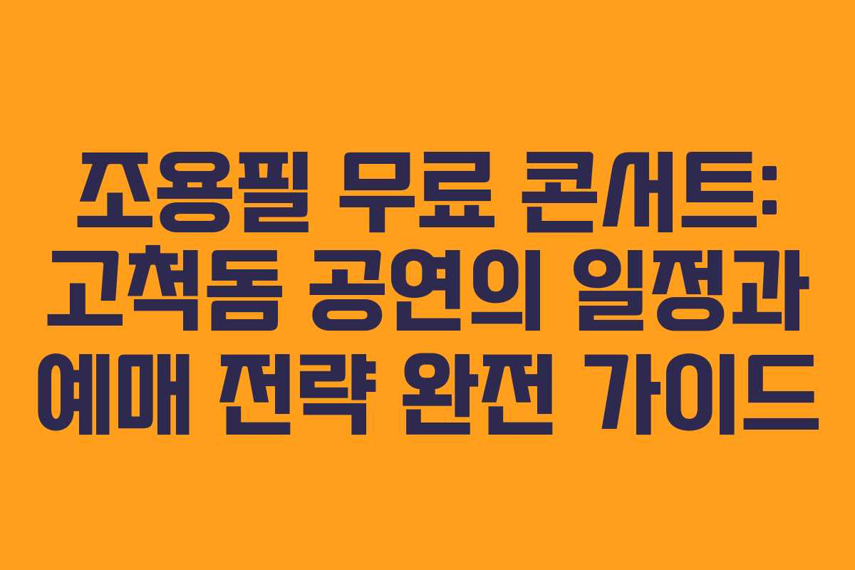 - 키워드: 조용필 무료 콘서트, 조용필, 고척돔, 예매 전략, 공연 일정, 추첨, KBS, 좌석, 티켓팅, 무료 공연, 팬 이벤트,