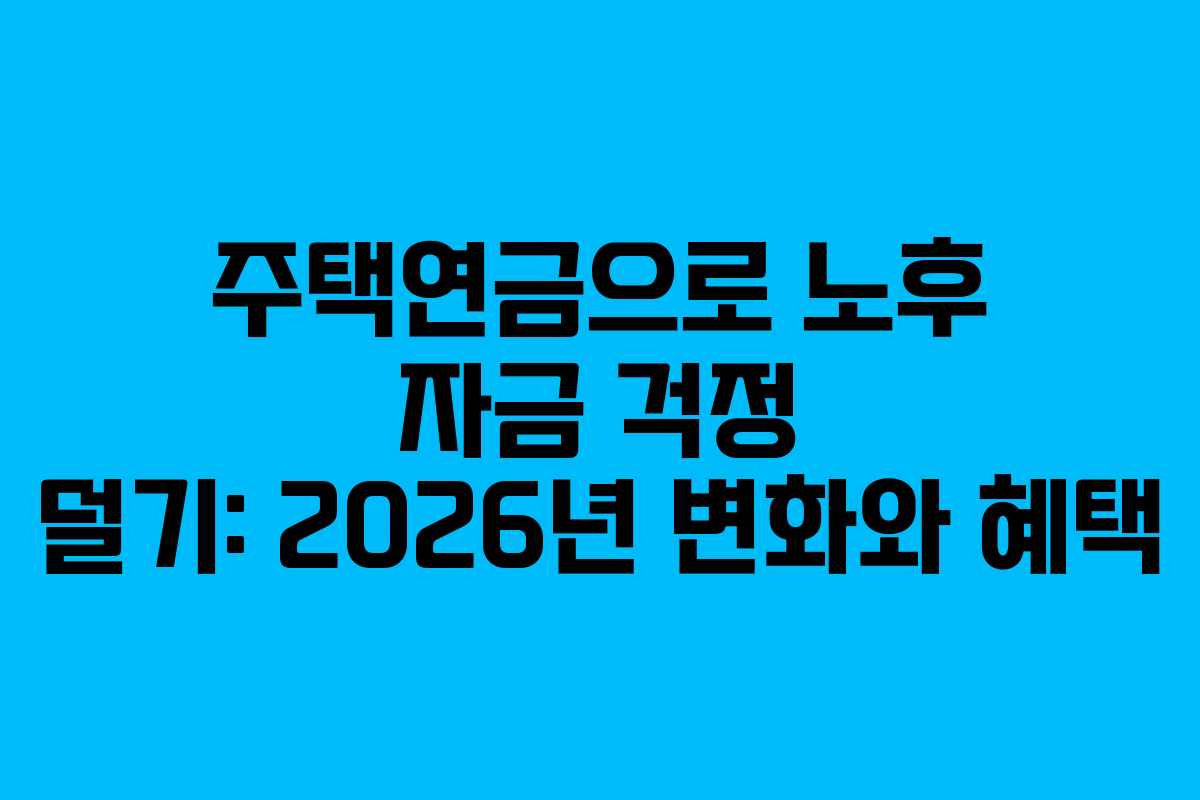 - 주택연금의 개념 이해와 2026년 변화 살펴보기