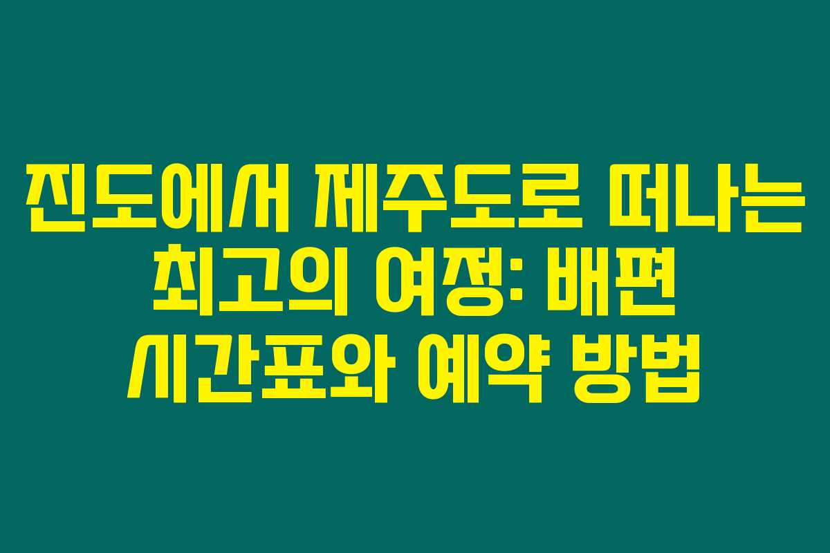 제주도로 떠나고 싶다고요? 진도에서의 편리한 배편 소식에 가슴이 뛰어요! 아래를 읽어보시면 진도 제주도 배편의 시간표, 요금 그리고 예약 방법에 대해 자세하게 알아볼 수 있을 거예요.