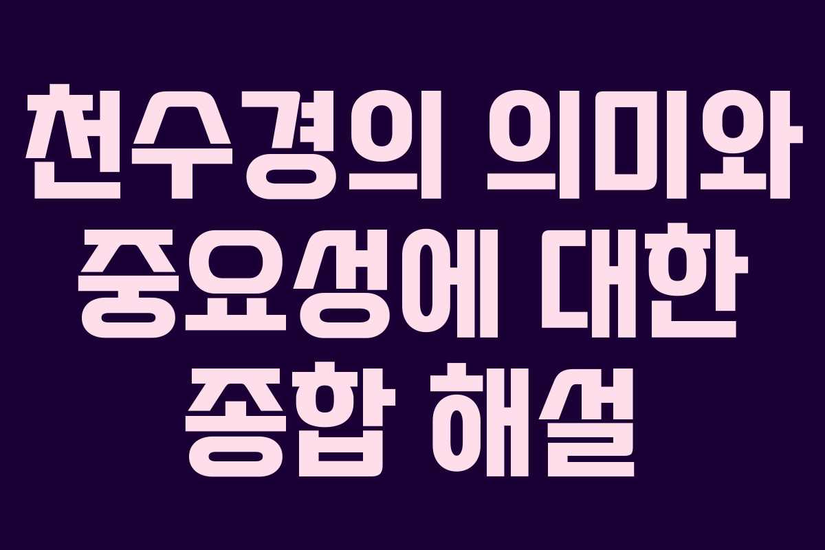 천수경은 신자들에게 단순한 경전 이상의 의미를 지닌다. 이는 삶의 여러 상황에서 실질적인 가르침을 제공하며, 신자들이 어려운 시기를 극복하는 데 도움을 준다. 천수경의 내용을 바탕으로 한 실천적 접근은 신자들이 자신의 삶을 더욱 의미 있게 만드는 데 기여한다.