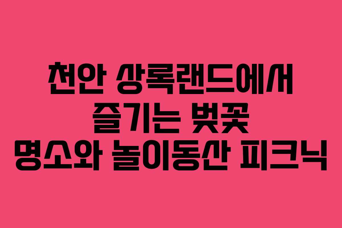 - 🤔 천안 상록랜드와 관련하여 진짜 궁금한 것들 (FAQ)