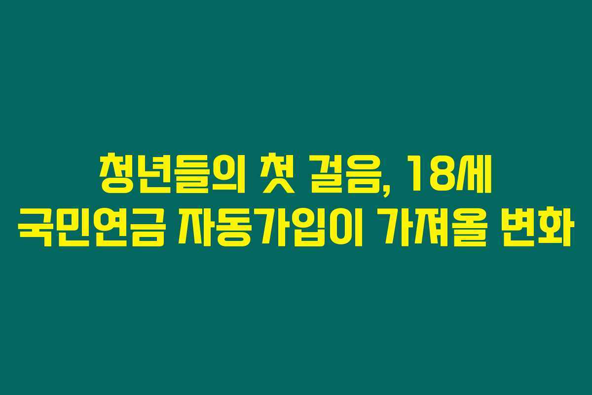 제가 직접 리서치한 바로는 2025년부터 시행되는 18세 국민연금 자동가입 제도가 청년들에게 많은 긍정적인 변화를 가져올 것으로 보입니다. 이 정책은 만 18세가 되는 모든 청년이 소득 여부와 관계없이 자동으로 국민연금에 가입되도록 하는 것으로, 그래서 아래를 읽어보시면 이 제도의 장점과 절차에 대해 자세히 알아볼 수 있을 거에요.