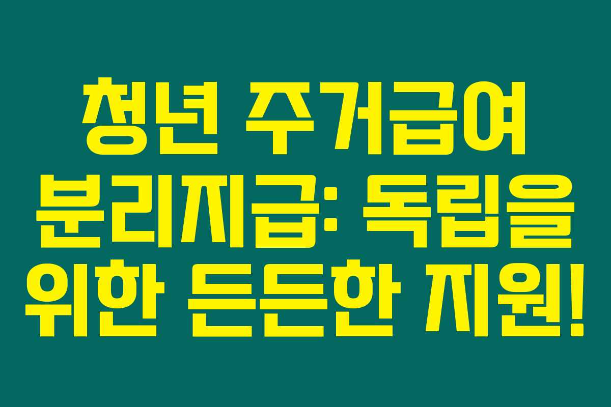 청년 주거급여 분리지급은 청년들에게 실질적 도움을 줄 수 있는 제도입니다. 독립을 위한 첫발을 내딛는 청년들에게 큰 힘이 되길 바라며, 많은 분들이 이 제도를 통해 안정적인 주거 환경을 만들 수 있기를 희망합니다.