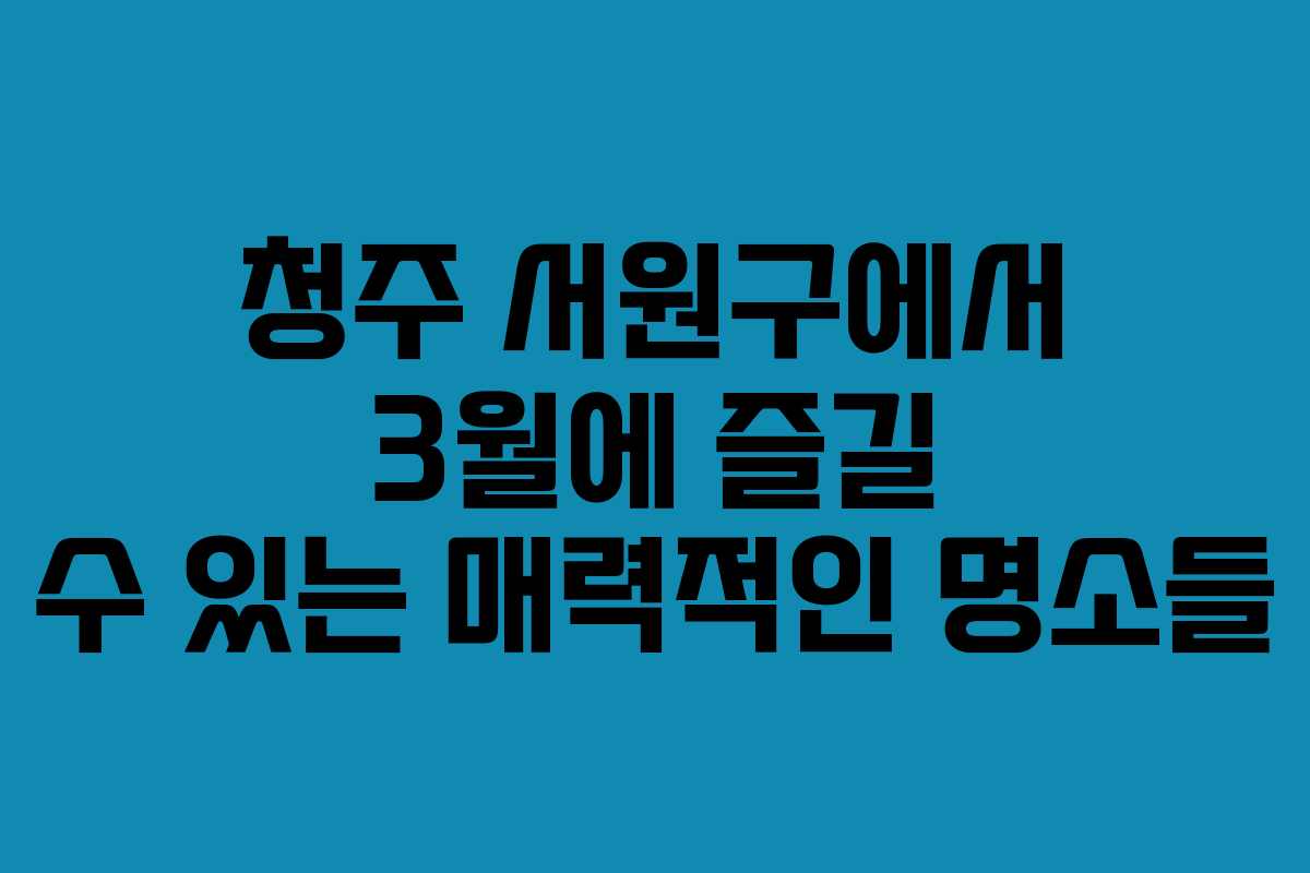 3월은 겨울의 마지막 기운이 사라지고 따뜻한 봄의 기운이 가득해지는 시기입니다. 충청북도 청주시 서원구는 도심 속에서도 자연과 역사, 그리고 문화가 어우러지는 특별한 공간입니다. 이 시기에는 특히 방문객들이 놓쳐서는 안 될 멋진 명소들이 많습니다. 3월의 서원구는 다양한 꽃들과 함께 생동감 넘치는 풍경을 제공합니다. 이번 글에서는 서원구에서 즐길 수 있는 매력적인 장소들을 소개하겠습니다.