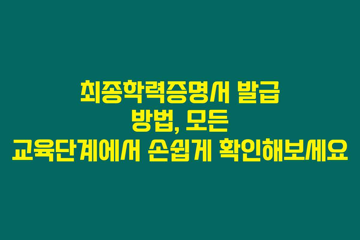 제가 직접 알아본 결과로는 최종학력증명서 발급이 이제는 매우 간편해졌어요. 정부24와 같은 플랫폼을 활용하면 초중고 및 대학교의 졸업증명서를 쉽게 인터넷으로 받을 수 있답니다. 아래를 읽어보시면 발급 절차에 대한 자세한 정보를 확인할 수 있어요.
