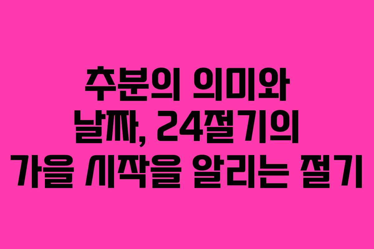 추분의 의미와 날짜, 24절기의 가을 시작을 알리는 절기