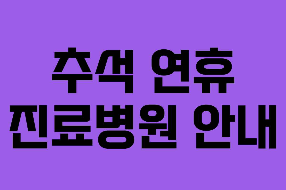 추석 연휴 동안에도 진료를 제공하는 병원이 많이 있으므로, 미리 검색하여 확인할 수 있습니다.