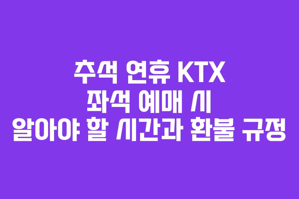 추석 연휴는 많은 사람들이 고향을 찾는 시기로, KTX를 이용한 여행 수요가 급증합니다. 이때 좌석 예매는 필수적이며, 사전에 알아두어야 할 사항들이 많습니다. KTX 예매 시 유의해야 할 예약 시간, 환불 규정, 특별 운행 정보 등을 정리하여 편리한 여행을 도울 수 있도록 하겠습니다.
