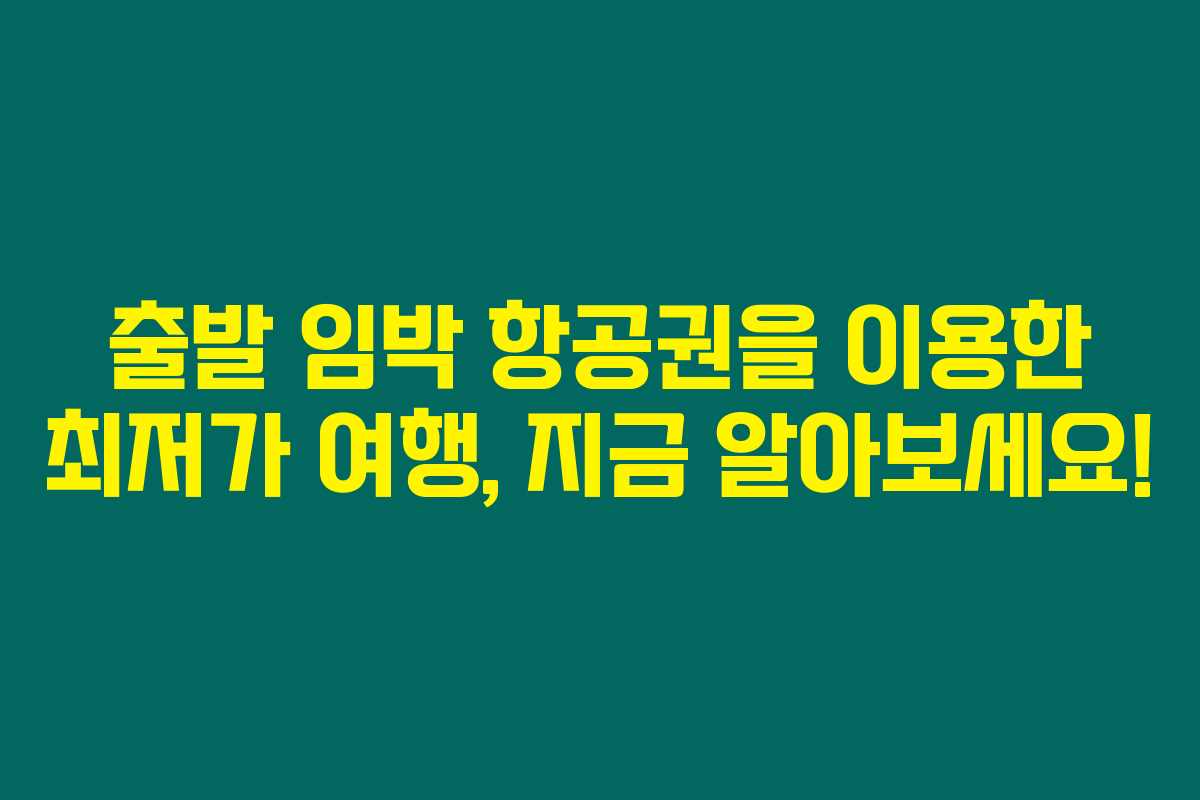 출발 임박 항공권에 대한 정보를 찾고 있다면, 아래의 내용이 정말 유용할 거예요! 정말 저렴한 가격으로 항공권을 구입할 수 있는 꿀 팁이 가득하니까요.