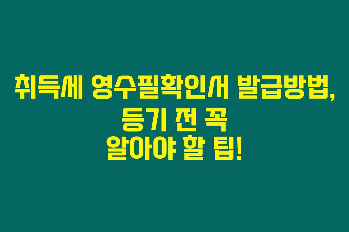 부동산 등기를 하기 위해서는 취득세 영수필확인서를 제출해야 하는데, 이는 법적으로 요구되는 사항이에요. 만약 이 서류가 없다면 등기 신청이 거부될 수 있으니 꼭 미리 준비해 두시는 것이 좋답니다.
