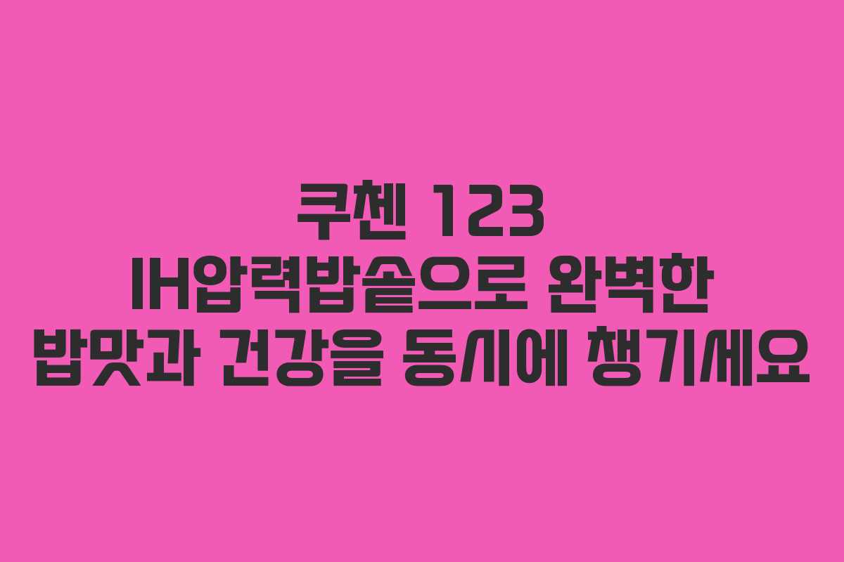 쿠첸 123 IH압력밥솥으로 완벽한 밥맛과 건강을 동시에 챙기세요