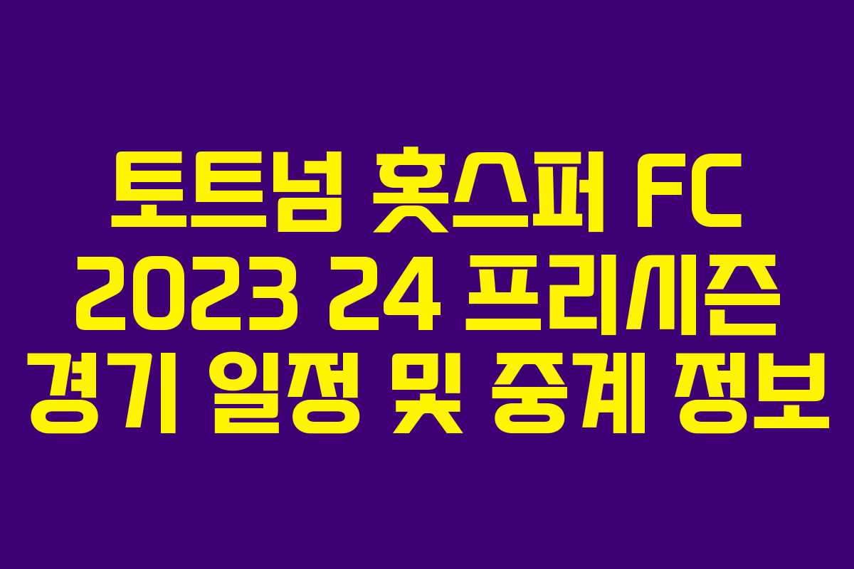토트넘의 프리시즌 일정은 다음과 같습니다: