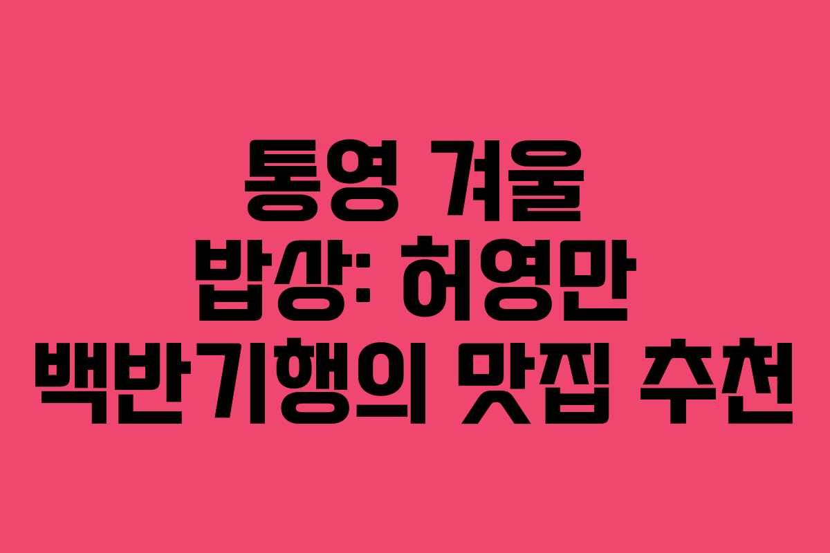 겨울철 통영의 맛을 즐기고 싶다면 허영만 백반기행을 통해 소개된 맛집들을 방문해보세요. 통영의 바다에서 나는 신선한 재료를 활용한 다양한 요리를 경험할 수 있습니다.
