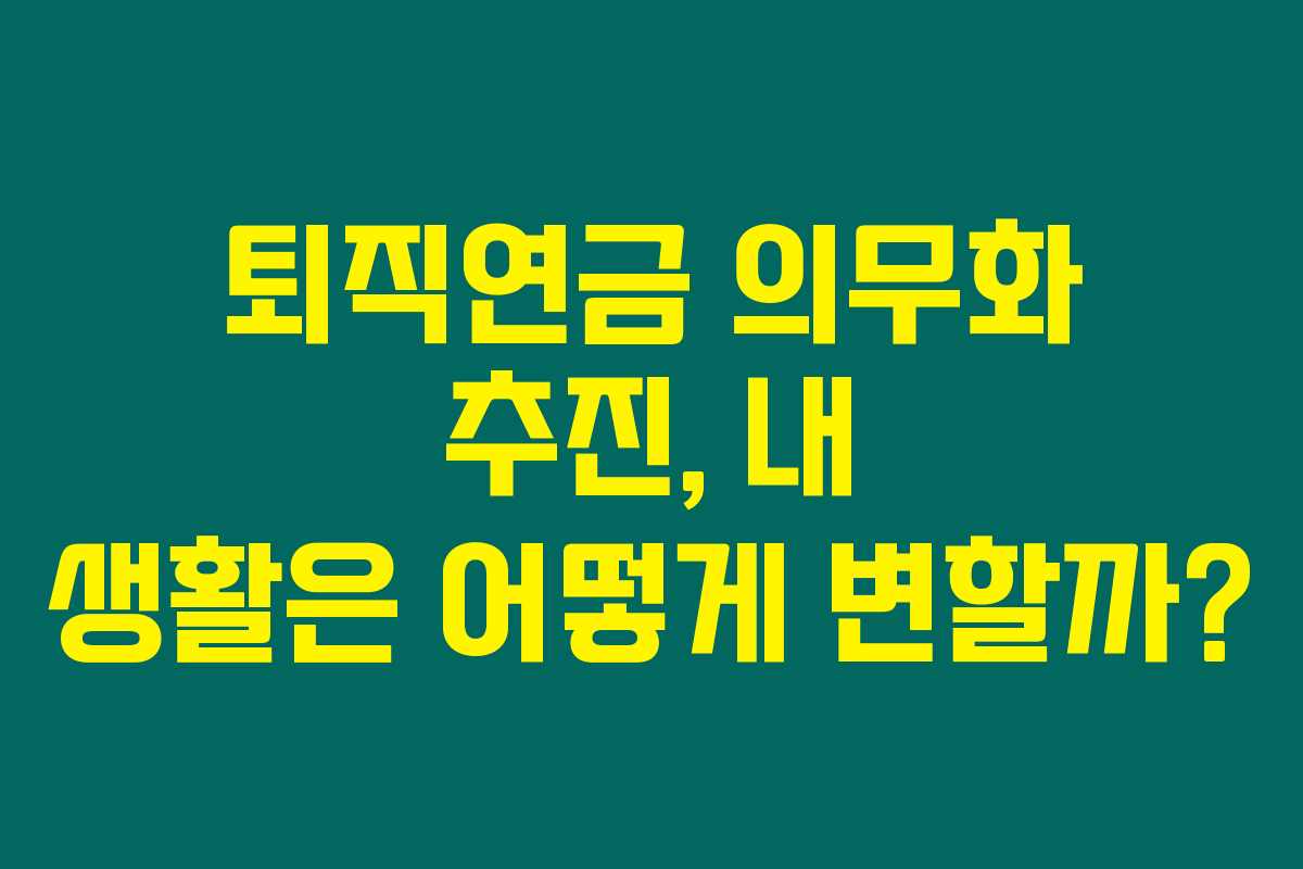 제가 알아본 바로는, 퇴직연금 의무화는 노동자들의 노후 소득 보장을 목표로 하는 중요한 정책으로, 퇴직급여 지급 방식의 전환을 요구하고 있습니다. 이에 따라 모든 사업장이 퇴직연금을 필수적으로 도입하게 되고, 제도를 통해 더 안전하고 체계적인 노후 준비가 가능해질 전망이에요. 아래를 읽어보시면, 퇴직연금 의무화로 인해 제도와 개인생활에 어떤 변화가 있을지 자세히 설명드릴게요.