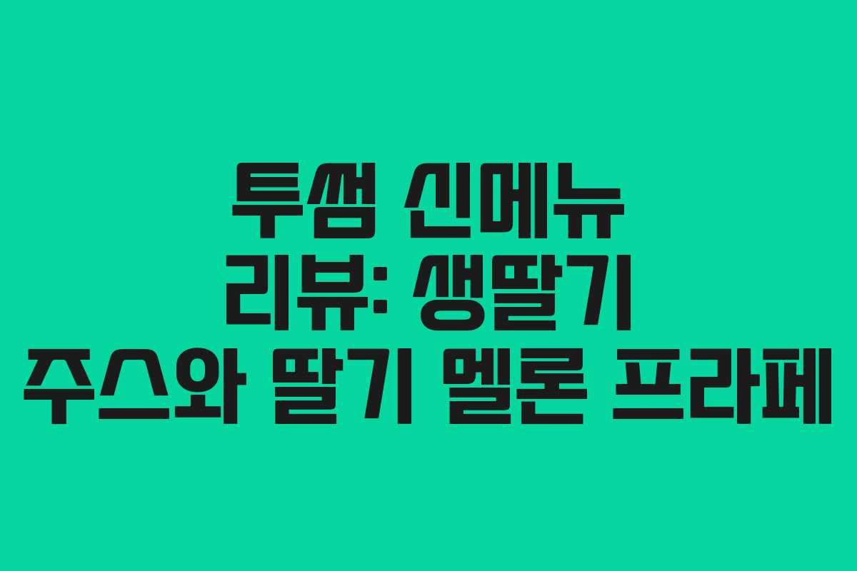 최근 투썸 플레이스에서 신메뉴가 출시되었습니다. 제철 맞은 생딸기를 활용한 다양한 음료와 디저트가 포함되어 있어 많은 관심을 받고 있습니다. 이번 포스팅에서는 생딸기 주스 로우 슈거, 제철 맞은 딸기 멜론 프라페, 그리고 생크림 소프트 쉬폰에 대한 솔직한 후기를 전해드리겠습니다.