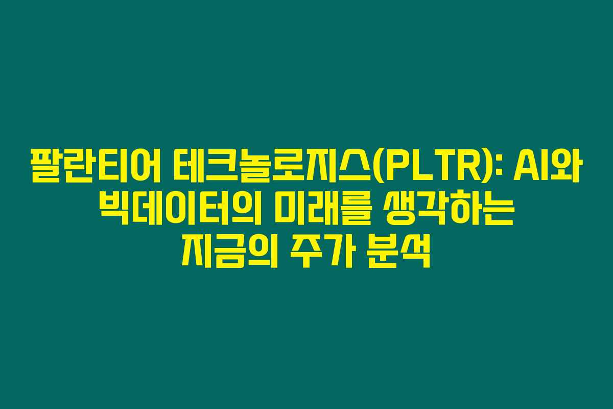 저의 개인적인 생각으로는 팔란티어의 주가는 단기적으로는 변동성이 클 수 있지만, 중장기적으로는 꾸준한 성장을 이룰 가능성이 높습니다. 이를 위해서는 지속적으로 실적을 관리하고, AI 및 빅데이터 관련 수요에 맞춰 혁신해야 한다고 봅니다.