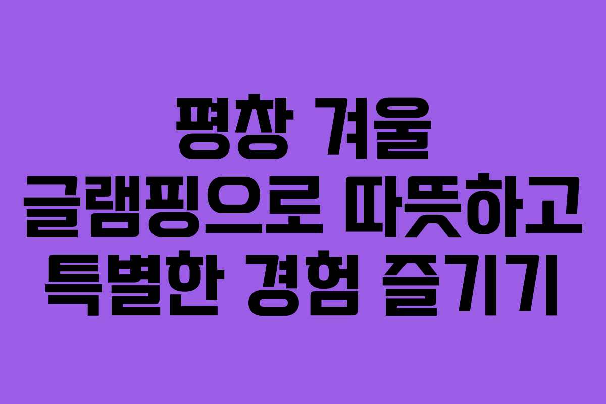 평창에서의 겨울 글램핑은 따뜻한 기억을 만드는 최고의 방법입니다. 준비를 철저히 하고, 다양한 액티비티를 통해 잊지 못할 겨울의 매력을 경험해 보세요.
