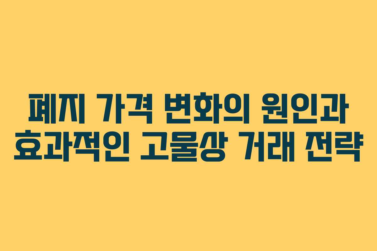 고물상에서 폐지 거래를 수행하는 분들에게 이번 정보가 도움이 되었기를 바랍니다. 폐지 가격 변동을 잘 이해하고, 올바른 거래 전략을 통해 더욱 안정적인 수익을 창출하시길 바랍니다.