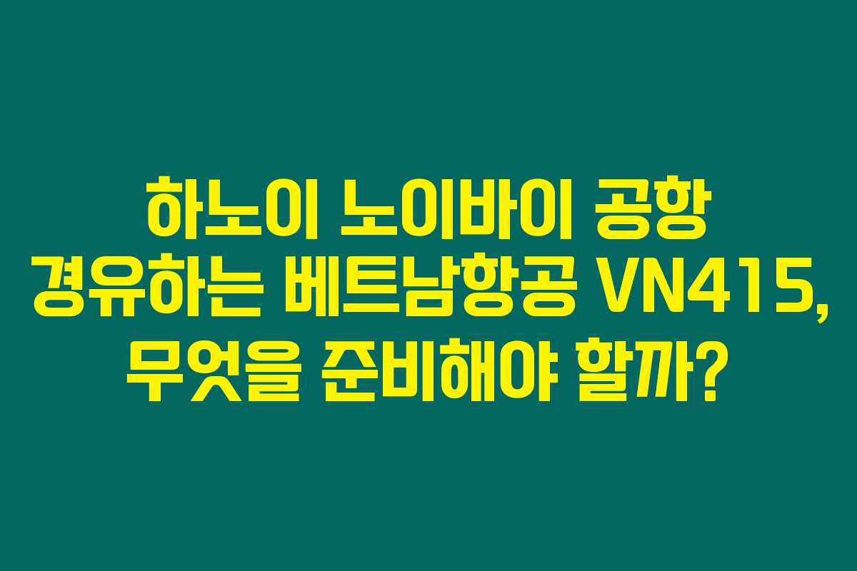 하노이 노이바이 공항을 경유하는 베트남항공 VN415의 여정은 많은 경험과 추억을 주는 소중한 시간이 될 것입니다. 부디 여러분도 하노이에서 멋진 경험과 인상 깊은 모험을 즐기시길 바랍니다. 여행 준비는 항상 즐겁고 설레지요? 앞으로의 여행 이야기를 기대해주세요!
