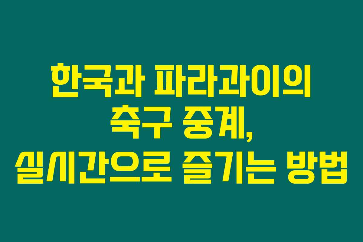 오늘 저녁 8시에 대한민국과 파라과이의 축구 경기가 예정되어 있어요. 많은 팬들이 이 경기에 관심을 가지고 있을 텐데 어떤 방식으로 중계를 볼 수 있을지 고민 되는 분들이라면 아래를 읽어보시면 도움이 될 것 같아요. 한국과 파라과이의 축구 중계를 실시간으로 보는 방법들을 소개해드릴게요.