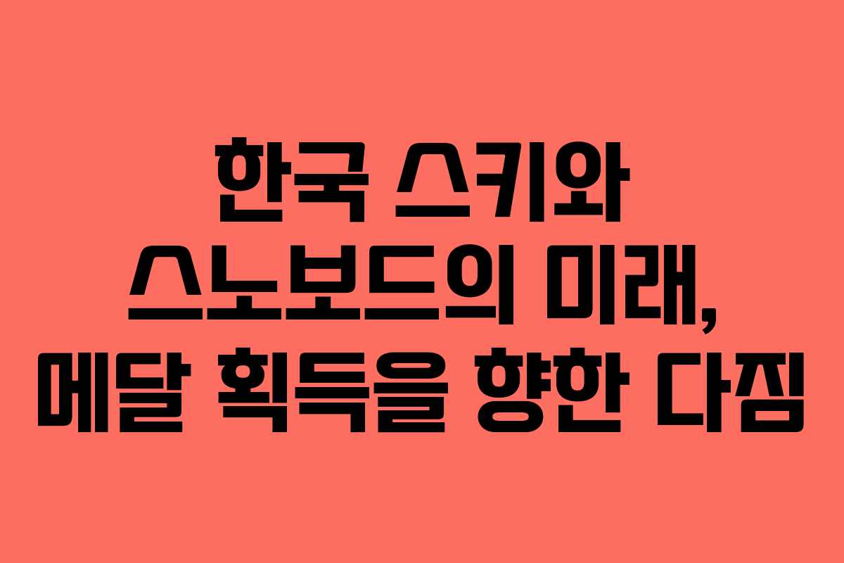 한국 스키와 스노보드가 올림픽 메달을 획득할 가능성은 점점 더 높아지고 있습니다. 선수들의 노력과 지원 시스템이 잘 조화를 이루어 나간다면, 한국의 첫 올림픽 메달을 기대할 수 있을 것입니다.