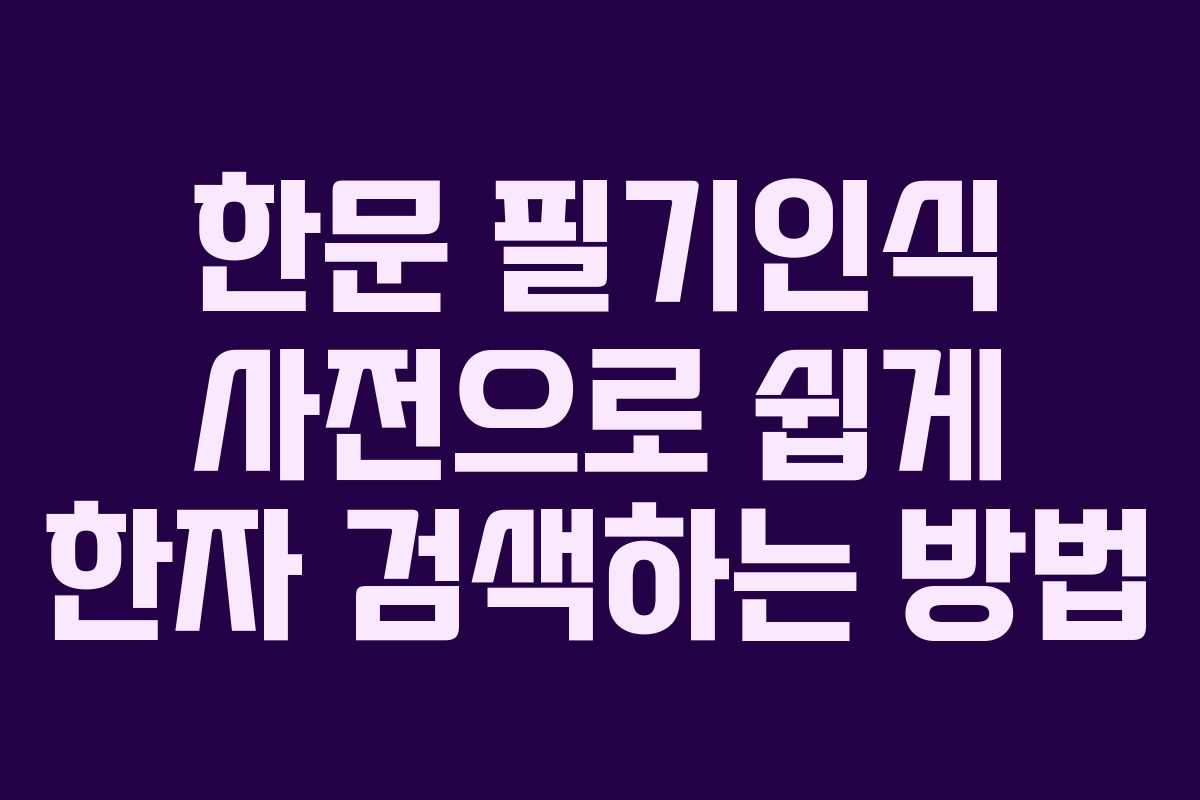 한문 필기인식 사전은 손으로 직접 그린 한자를 인식하여 검색하는 기능을 제공한다. 이 방식은 사용자가 한자를 정확히 모르더라도 필기 인식 기능을 통해 쉽게 원하는 한자를 찾을 수 있게 한다. 이러한 기능은 특히 한자를 처음 배우거나 잘 모르는 사람들에게 유용하다. 필기인식 사전은 사용자가 한자의 모양을 직접 그려볼 수 있어, 자연스럽게 한자 학습이 가능하다.