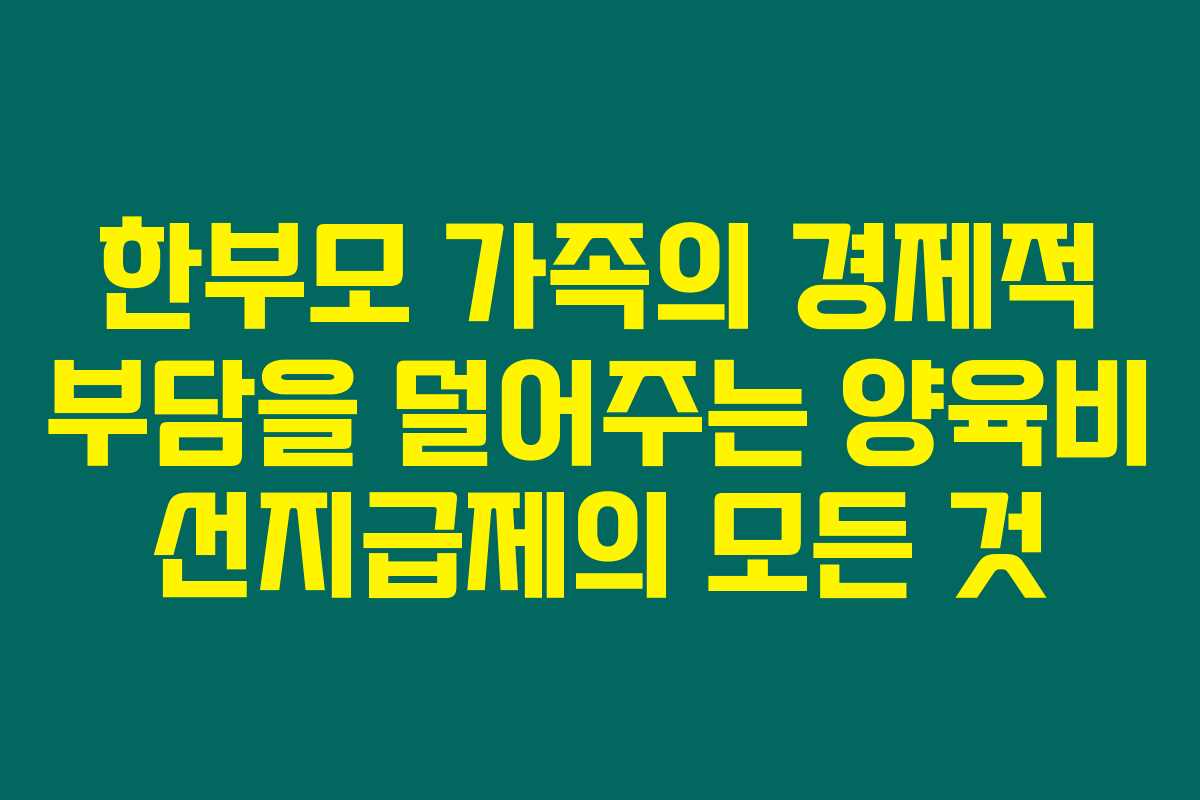 한부모 가족의 경제적 부담을 덜어주는 양육비 선지급제의 모든 것