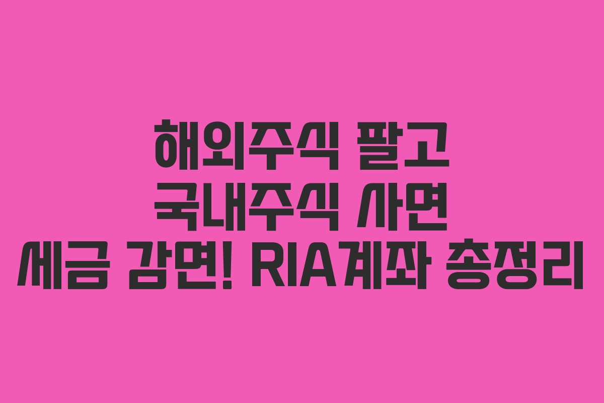 RIA계좌는 해외주식을 매각하고 국내주식에 장기 투자할 경우 세금 감면 혜택을 제공하는 계좌입니다. 이를 통해 정부는 국내 자본시장 활성화와 외환시장 안정화를 목표로 하고 있습니다.