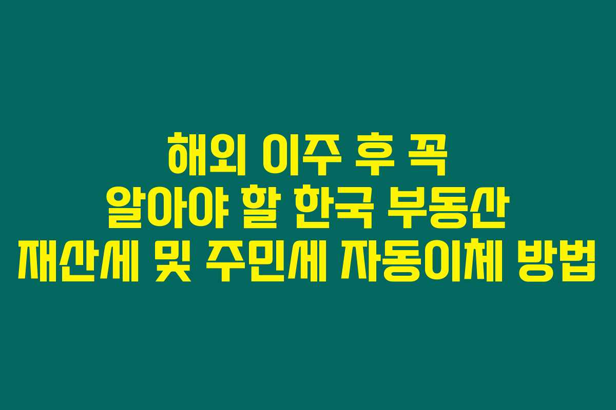 1. 해외 이주 후 한국 부동산 재산세 납부 의무 🌍