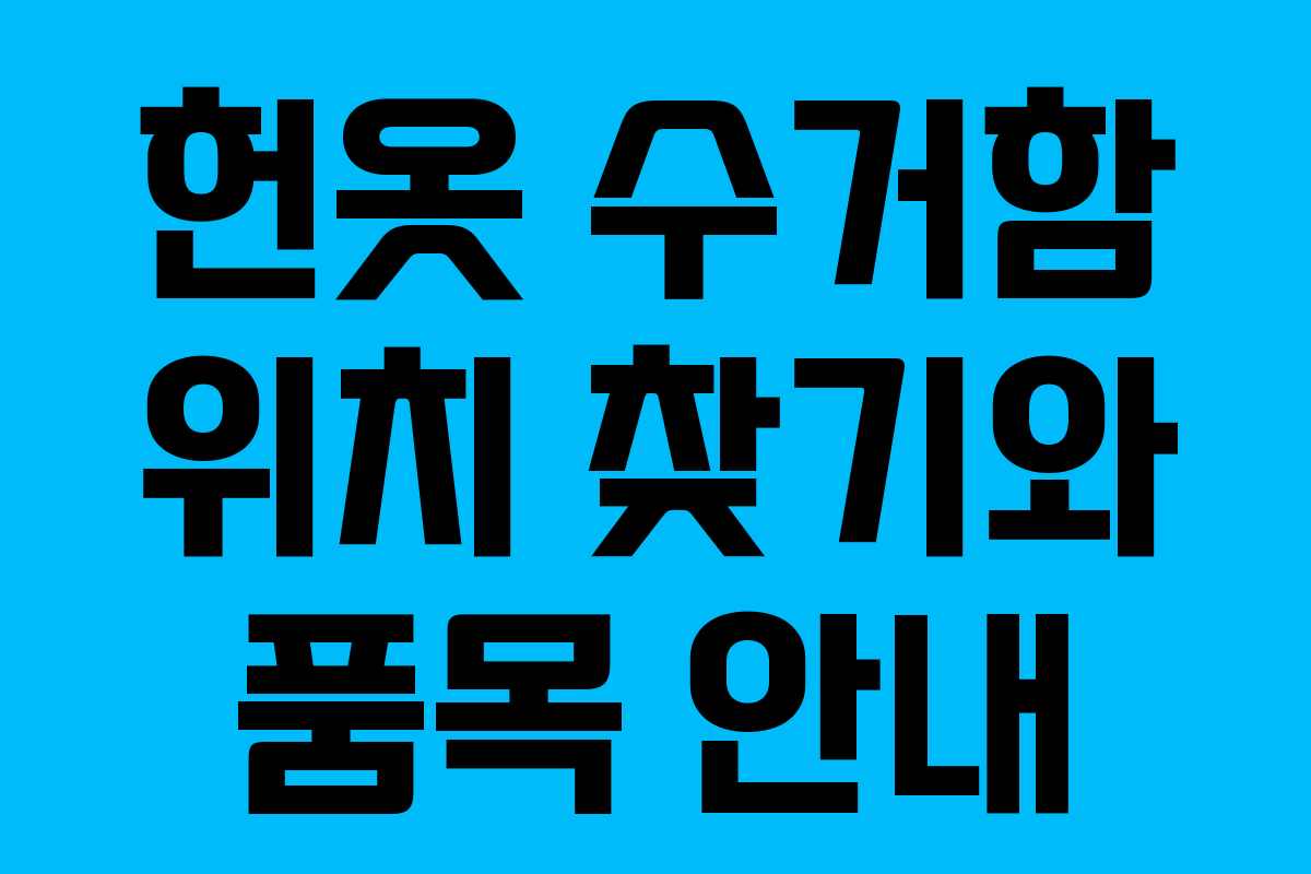 헌옷 수거함은 특정 품목만 수거하며, 일반 쓰레기와는 구분되어야 합니다. 다음은 수거 가능한 품목과 수거 불가 품목입니다.