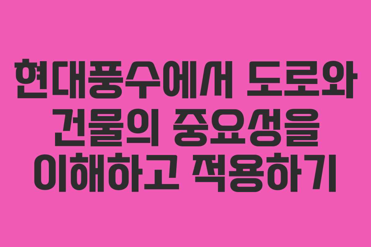 도로와 건물의 배치는 현대풍수에서 중요한 요소로 간주된다. 이 두 가지 요소는 환경과 운의 흐름에 깊은 연관이 있어, 올바른 선택이 삶의 질에 긍정적인 영향을 미칠 수 있다. 본 글에서는 현대풍수의 원리를 바탕으로 도로와 건물의 관계, 그리고 명당의 조건을 살펴보며, 실제적인 대지 선택 기준과 주변 환경 고려 사항을 제시하고자 한다.