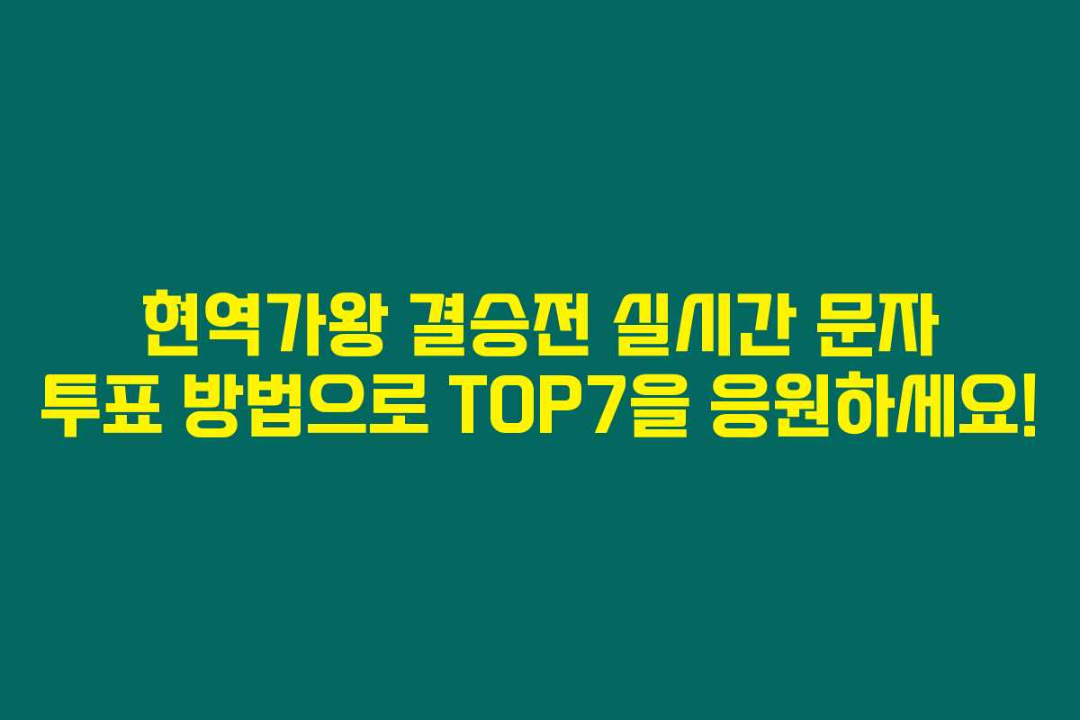 결승전을 기다리고 계신가요? 현역가왕2 결승전이 다가오고 있습니다. 2월 13일 방송 예정인 이번 결승에서 실시간 문자 메시지 투표가 핵심 역할을 하면서 대한민국을 대표할 TOP7를 뽑는 데 큰 비중을 차지하니, 혹시 아직 투표 방법을 모르신다면, 아래를 꼭 확인해 보세요.