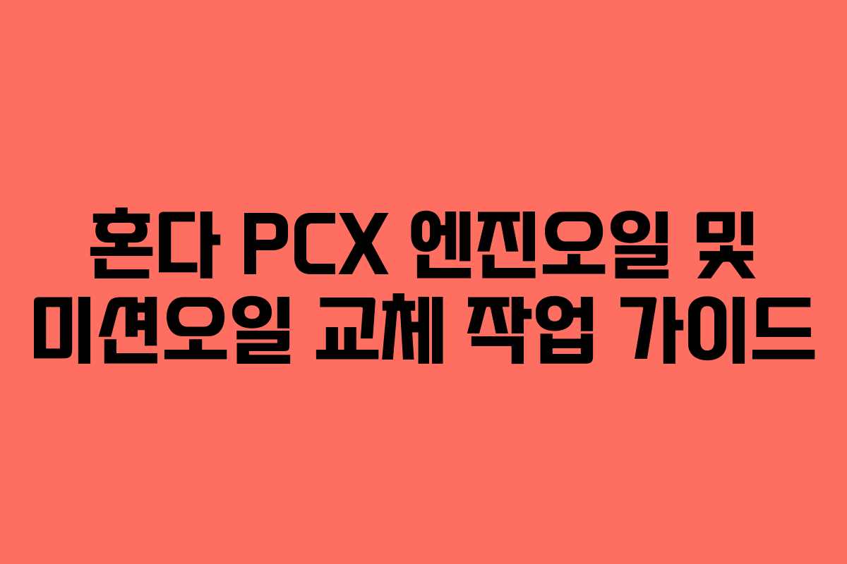 혼다 PCX의 엔진오일과 미션오일을 교체하는 작업은 차량의 성능을 유지하는 데 필수적이다. 본 가이드는 혼다 순정 G2 오일을 사용하여 교체 작업을 수행하는 방법을 안내한다. 적절한 준비물과 절차를 통해 원활한 작업을 할 수 있도록 돕는다.