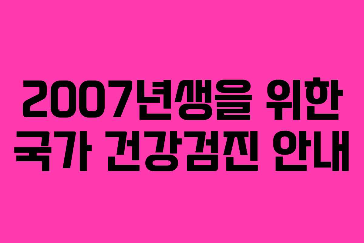 이와 같이 2007년생들은 2025년에 건강검진을 통해 자신의 건강을 점검할 수 있습니다. 첫 건강검진인 만큼, 꼭 참여해보시길 권장합니다!